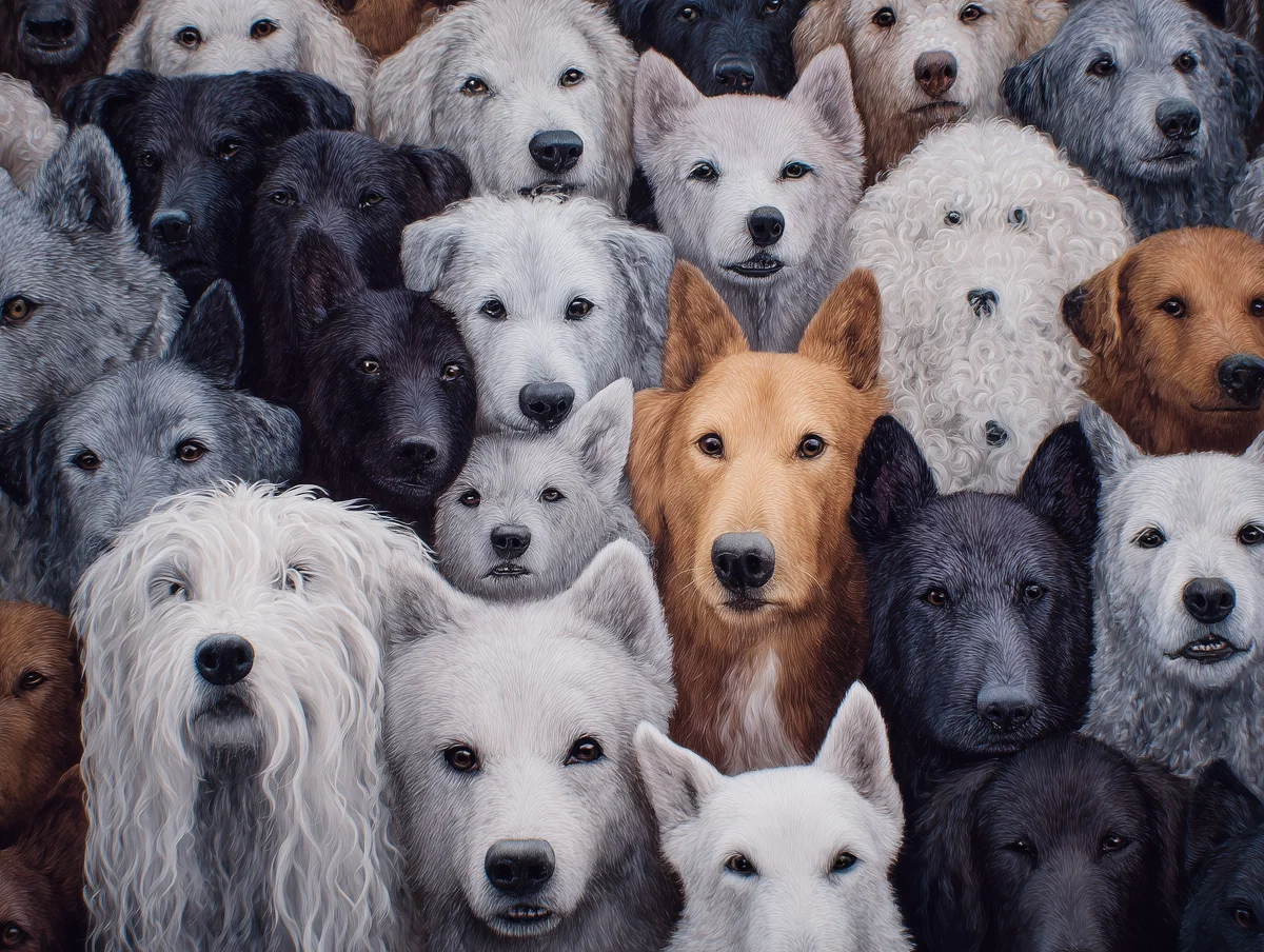 This delightful illustration captures the essence of our furry friends just being themselves—playful, curious, and full of life. The vibrant colors and charming details make it an eye-catching piece that will bring warmth and joy to any space. Whether it’s a playful pup chasing its tail or a gentle soul lounging in the sun, this artwork perfectly encapsulates the spirit of dogs at play.